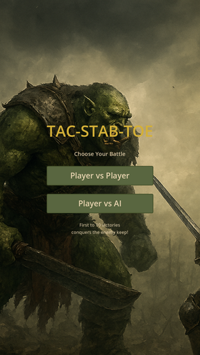 Tac-Stab-Toe is a fantasy-themed strategic twist on classic tic-tac-toe, built in Godot 4.5. It transforms the simple grid game into an epic campaign where two opposing factions battle for dominance through tactical skirmishes.